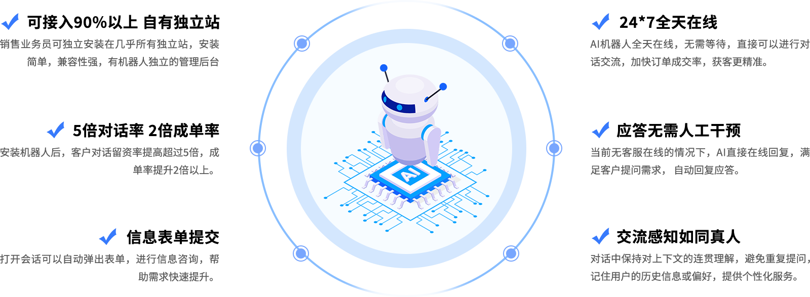 AI智能客服支持桌面网站、移动网站、App、等多种渠道 接入,客服可以在一个后台接待所有渠道来访的用户。
